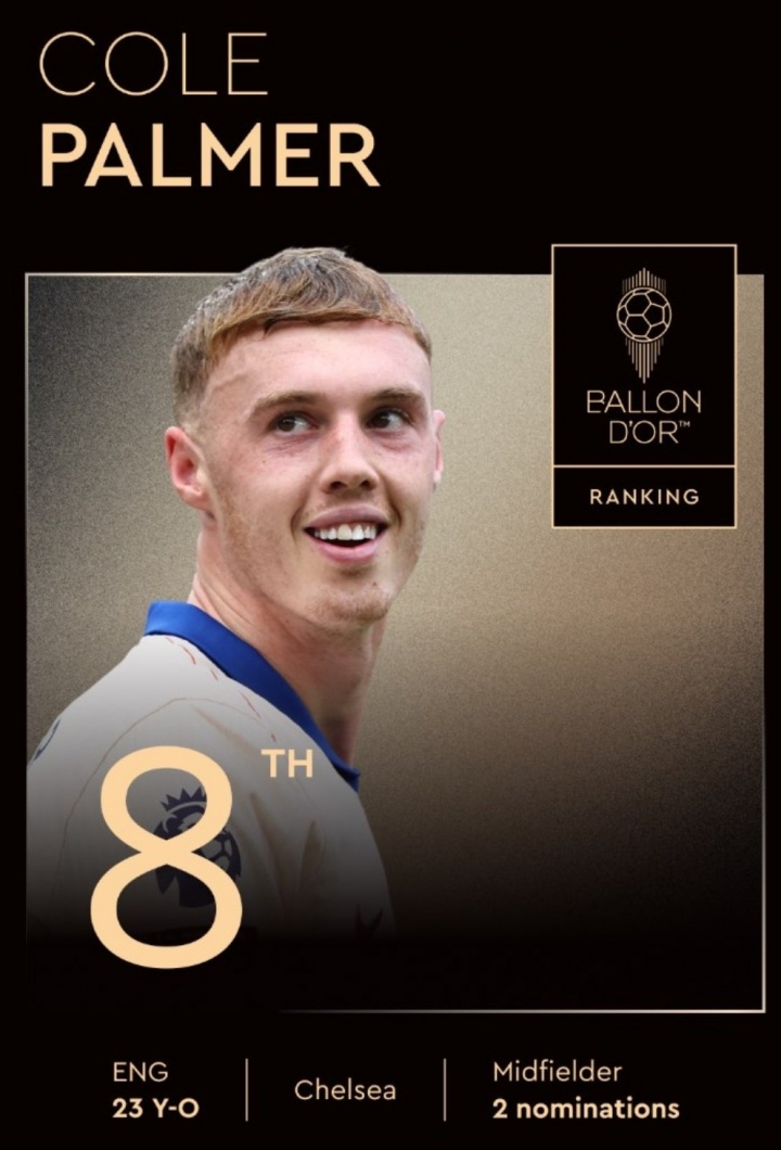 帕尔默成为自2011年的内马尔以来,又一个没有欧冠入围金球奖前十的球员;