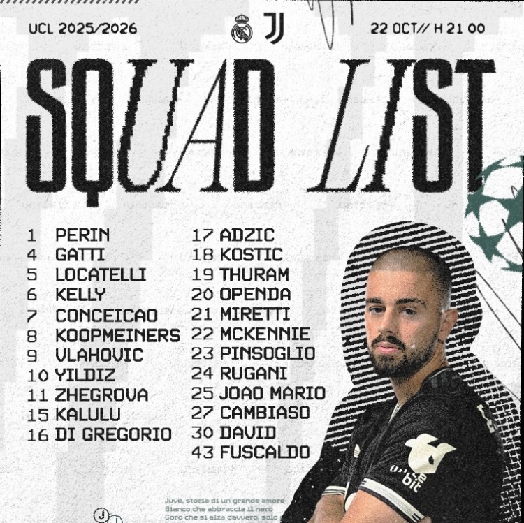 尤文客战皇马名单:伊尔迪兹在列,米雷蒂、热格罗瓦回归