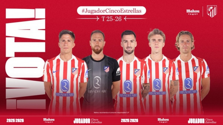 马竞10月最佳球员候选:朱利亚诺-西蒙尼、奥布拉克、巴埃纳在列