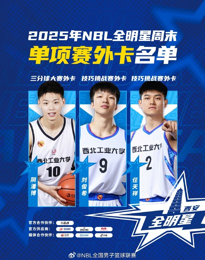 2025年NBL明星赛单项赛将迎来三位来自西北工业大学的外卡球员。他们将分别参加技术 应战 赛和远投大赛。