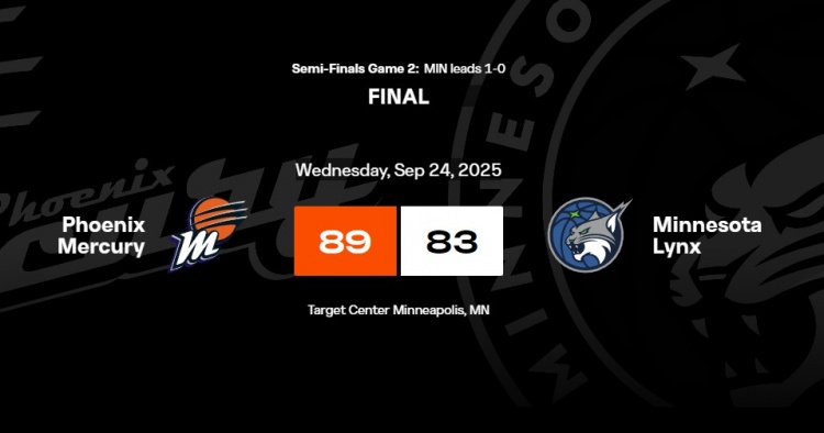 9月24日讯 今天结束的一场WNBA准总决赛 ,菲尼克斯水星89比83击败明尼苏达山猫,将大比分扳为1比1。