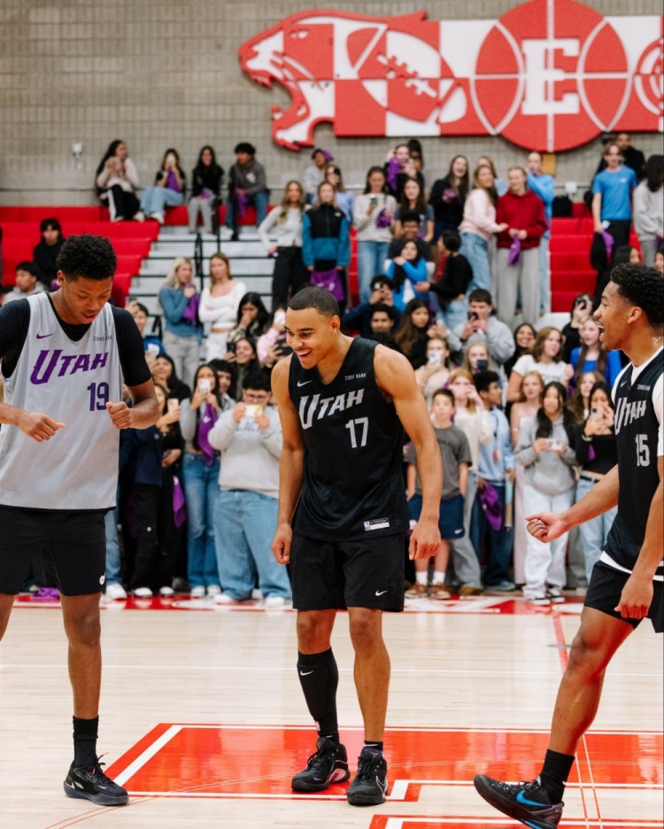爵士队前往当地高中办透明 练习 活动 除了带去欢乐还捐款一万刀