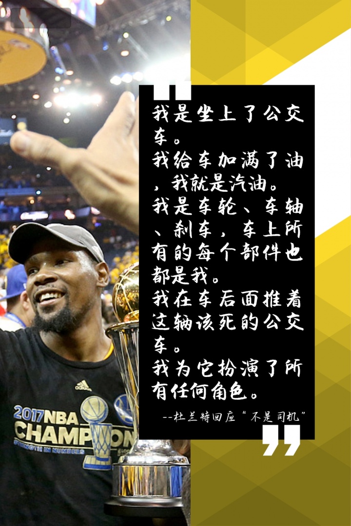 杜兰特回应“不是车手”:助威 的是我 车子本身是我 推车的也是我