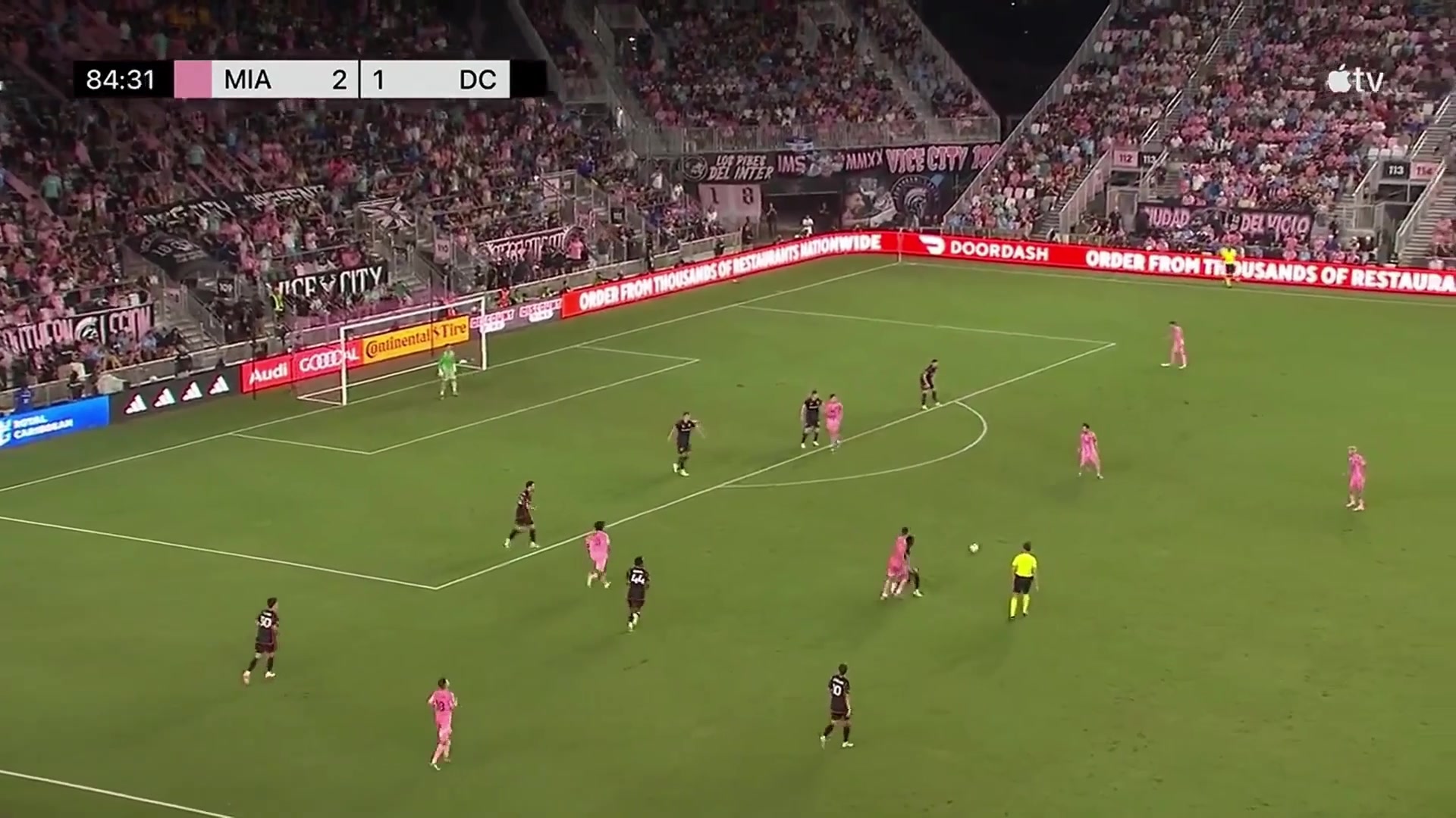 赛事 第85分钟,布斯克茨传送球 给梅西,梅西远射上演连进两球,亚洲杯直播现场直播本场已2射1传,职业联赛 22场22球10助,迈阿密3-1领跑 华盛顿联。