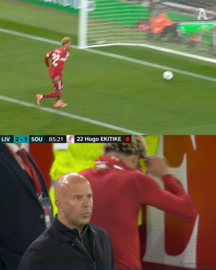 > 离谱!埃基蒂克脱衣庆祝将停赛,斯洛特有点生气瞪大了眼😠
