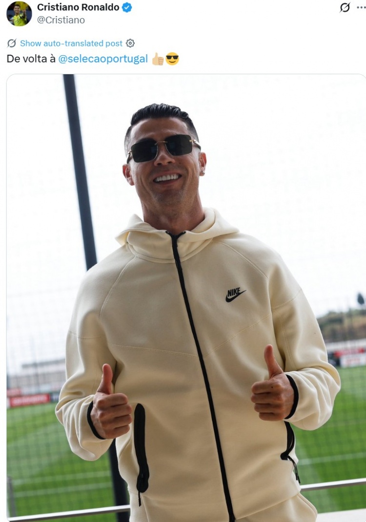 C罗社媒晒回到葡萄牙国家队报道照片,戴墨镜出镜帅气十足