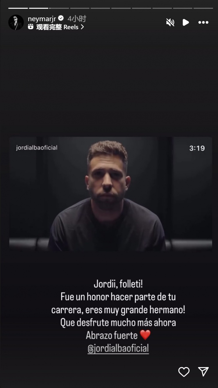 10月8日讯 阿尔巴将在本赛季结束后退役,前队友内马尔社媒发文致敬。