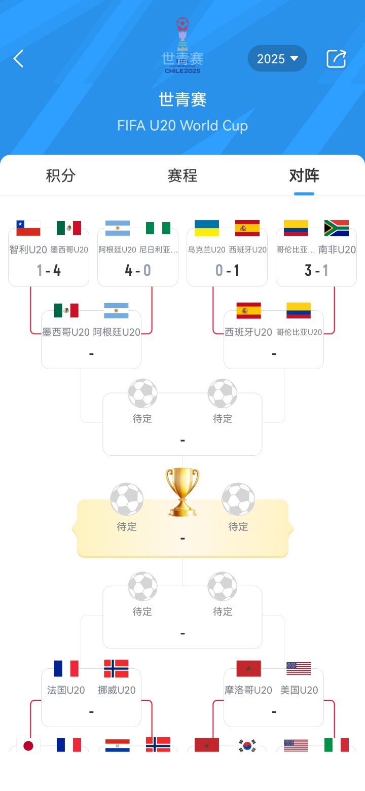 世青赛8强出炉!阿根廷墨西哥PK 西班牙vs哥伦比亚、法国vs挪威