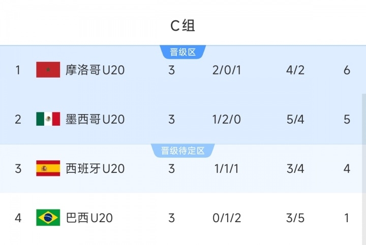 值得一提的是,24直播网C组出局的球队是经典 豪门巴西U20,世青赛5冠王。如此看来,C组是当之无愧的死亡之组。