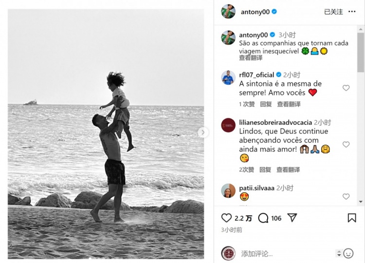 享受美好时光!安东尼社媒分享度假照片,本赛季5场1球1助