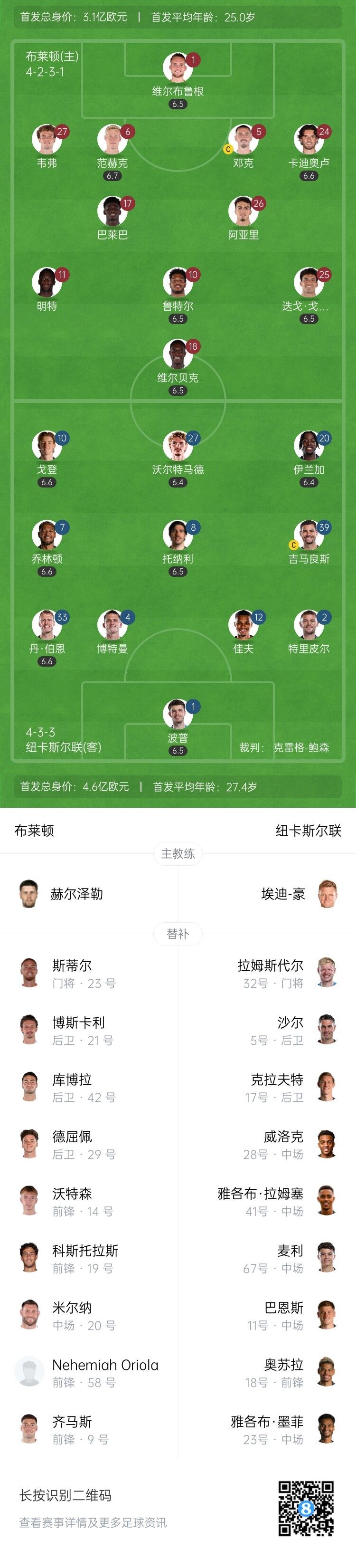 半场-布莱顿1-0纽卡斯尔 维尔贝克单刀赴会破门鲁特尔远射造威胁