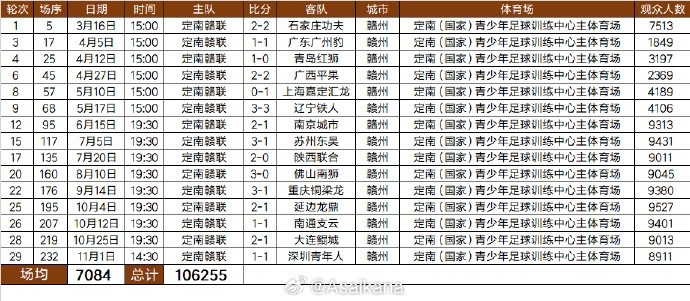 2025中甲职业联赛 定南赣联队现场观赛人群 人数统计:合计106255人次,场均7084人。