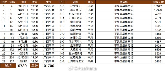 2025中甲职业联赛 广西平果队现场观赛人群 人数统计:合计101700人次,场均6780人。