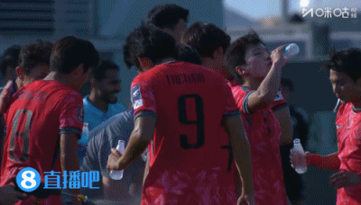 > 太热了!补水中止 期间,韩国U23指导教练员拿水枪给球员降温