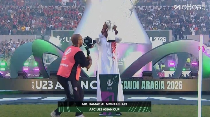 > 一步之遥!U23亚洲杯总决赛 即将开始,第一名 奖杯已被摆在运动活动 场 中央