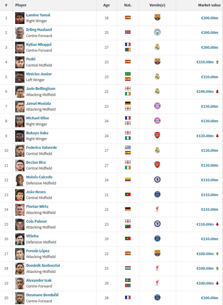 1-亚马尔、哈兰德、姆巴佩,2亿