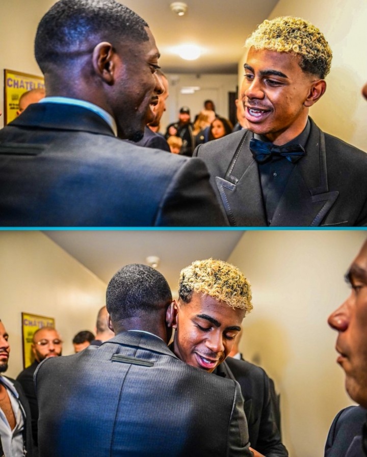 > 两大角逐 者碰面!登贝莱亚马尔在金球奖颁奖前相互拥抱
