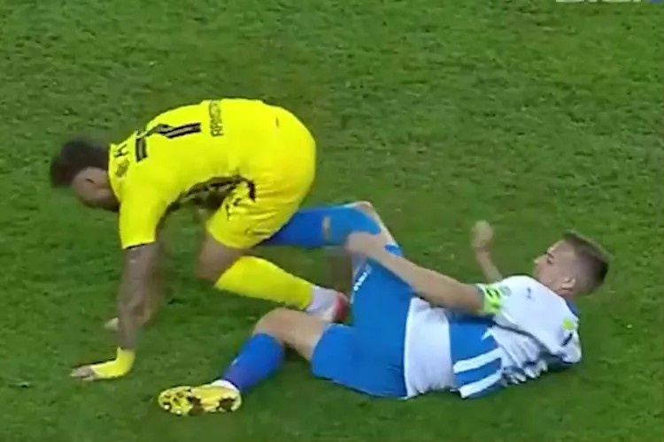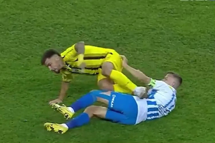 合理吗🤔罗马尼亚球员被蹬踏后猛踹对手私处染红,对手没拿牌