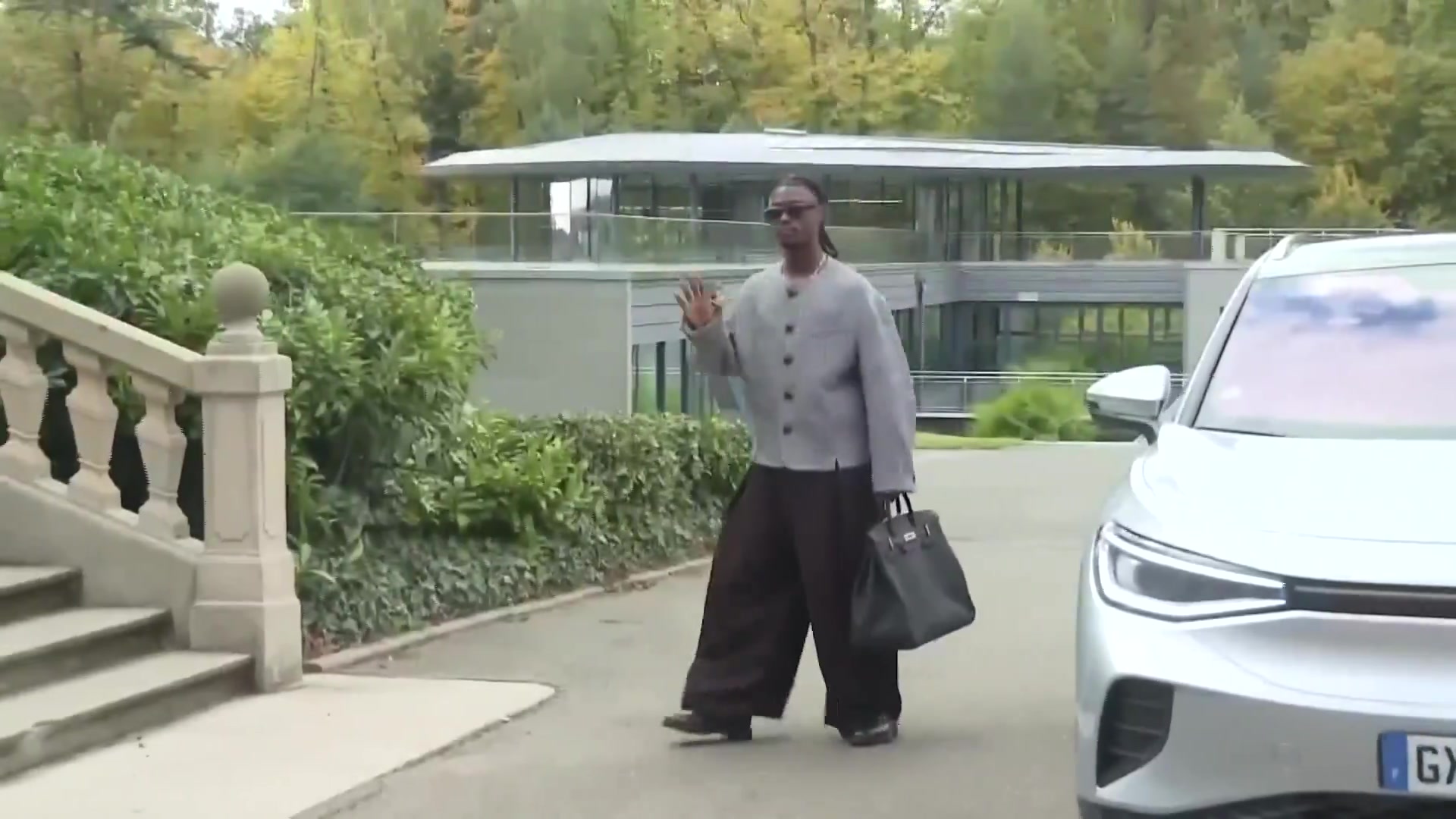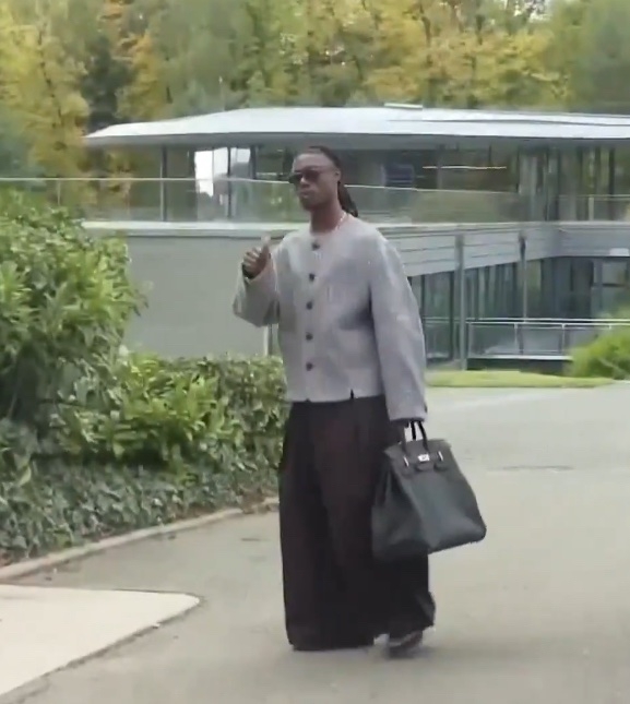 这是什么造型😂卡马文加到法国队报到:马褂+阔腿裤+手提皮包