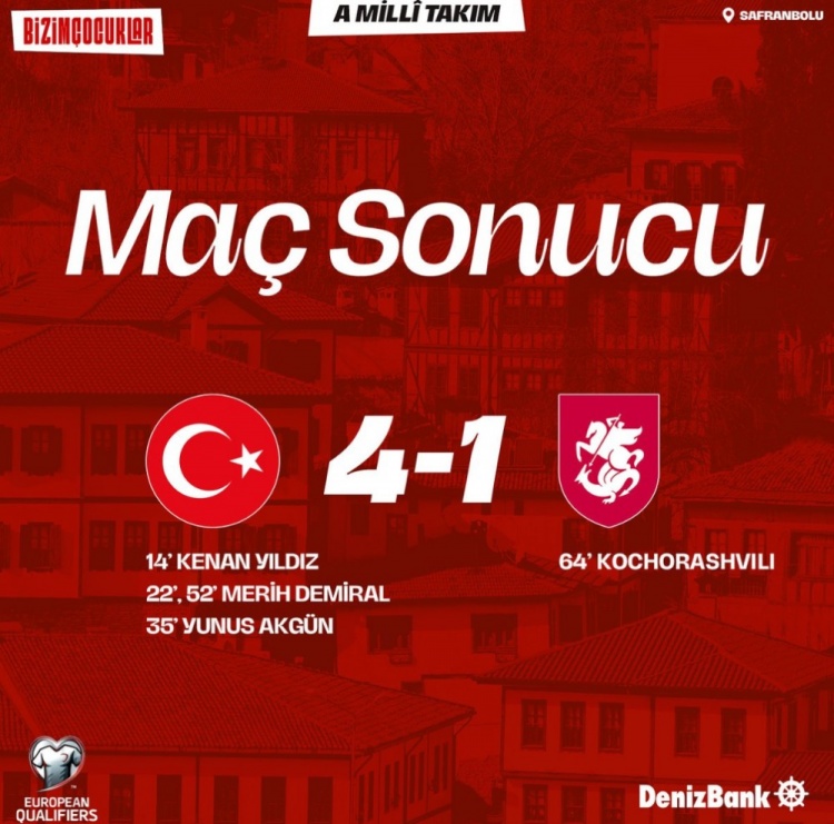 世预赛欧洲区:伊尔迪兹破门,德米拉尔双响,土耳其4-1格鲁吉亚