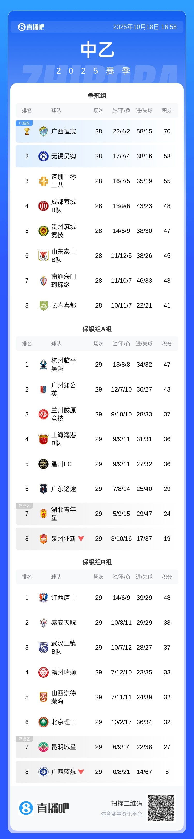 10月18日讯 中乙保级组第29轮,湖北青年星1-3不敌温州FC,昆明城星0-1不敌泰安天贶,亚洲杯视频免费直播双双降入中冠。