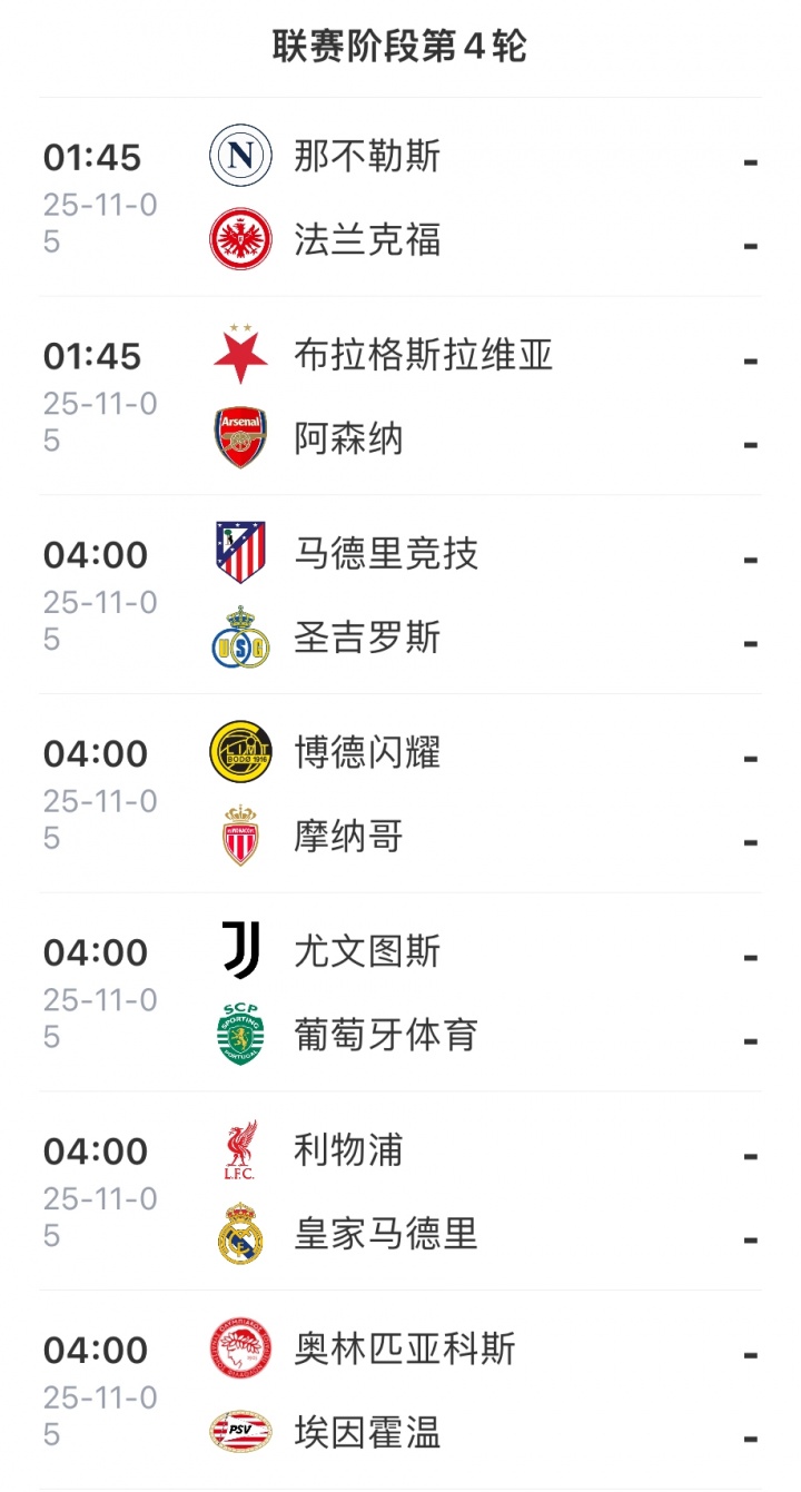 10月23日讯 欧冠第3轮赛事 全部结束,36支球队在2天内打完了18场赛事 。第4轮赛事 将在北京时间11月5日-6日凌晨进行,将依旧在2天内打完18场赛事 。与前2轮不同的是,亚洲杯直播cctv5第4轮开始时将处于欧洲冬令时,所有赛事 将会晚1小时开赛。
